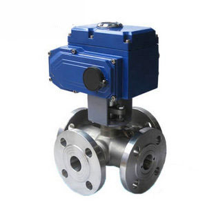 电动四通球阀换向原理:“LL'’型四通球阀只需操作板手或执行器将球体转动90°,同时对两种介质的流向进行切换,即方便而迅速,实现一阀多用的效果。